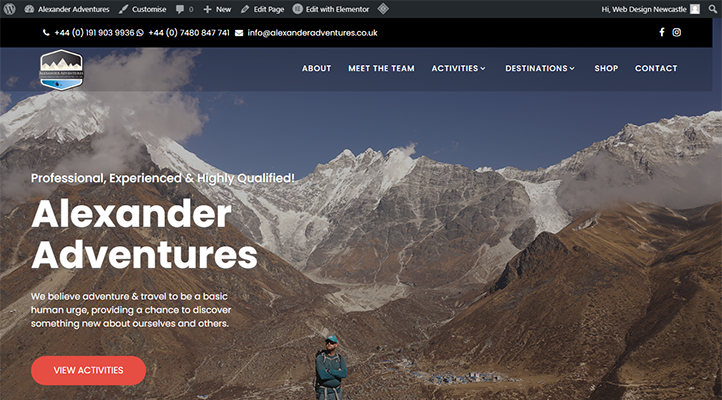 HomepageAboutContactActivitiesMeet the teamThis is the full landing page of Alexander Adventures shopping cart website, and examples of some inner pages.